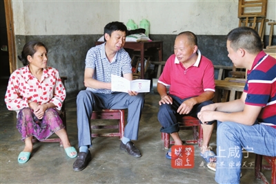 近日,大畈镇组织党员干部深入扶贫一线逐一入户,与帮扶贫困户面对面、零距离交流脱贫思路,发放“精准脱贫明白卡”。