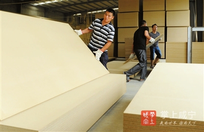 据介绍,该公司主要利用周边竹加工厂的边角料,经过再加工生产竹板材,产品广泛应用于家俱、家电、船舶等行业,年生产4万立方纤维板。