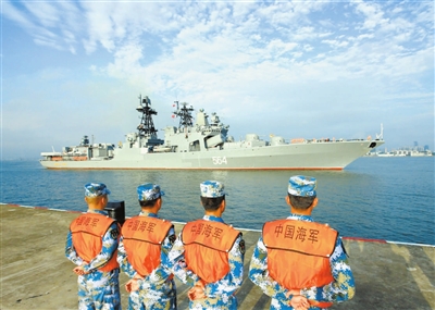 当日,参加中俄“海上联合—2016”军事演习的俄方参演舰艇编队,陆续抵达广东湛江某军港。海军举行了隆重的欢迎仪式。