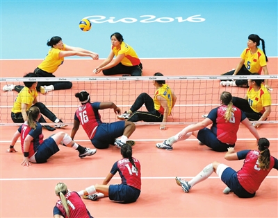 当日,在里约残奥会坐式排球女子小组赛中,中国队以3比2险胜美国队。据新华社