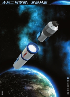 9月15日22时04分,搭载着天宫二号空间实验室的长征二号F T2运载火箭在酒泉卫星发射中心点火发射。约575秒后,天宫二号与火箭成功分离,进入预定轨道,发射取得圆满成功。
