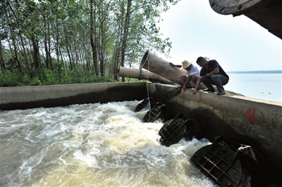 13日,嘉鱼县簰洲湾镇双益泵站正开足马力抽水。