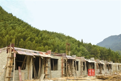 沿着一条泥泞的小路蜿蜒而上,记者来到一座山坳,三、五座吊脚楼呈现眼前,楼边空地上堆满竹木等建筑材料。