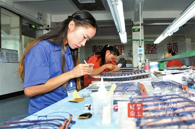 据了解,该公司主要从事近视镜、老花镜、太阳镜等的设计、生产和销售。目前公司每月国内外订单不断,工人们正加班加点赶制。