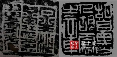 (左为赤壁摩崖石刻黄翼升款识篆刻印章,右为清西泠八家之钱松篆刻作品)