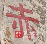——隶书作品。隶书“赤”字,气势浑厚,雄健壮美。第一横是平横,第二横则是波横,特别注重起行收,一波三折清晰可见。蚕头雁尾的笔划和内松外紧、方扁横势的结体形成了隶书的明显特征。整个字看上去干净、秀美、古拙、厚重、遒劲。据《汉隶》介绍:汉隶主要有两大存在形式:石刻与简牍。其八分书因其笔画分背、结体扁方,形若「八」字,因此被称作「八分书」。「八分」之名起于东汉,前人已做过不少解释,比较可信的有唐张怀瓘『书断』说的:「渐若八字分散,故曰八分。」清包世臣『艺舟双楫』说的:「言其势左右分布相背然也……综合这些说法可以断定,「八分」乃是成熟、规范化了的隶书别名,它以东汉着名的碑刻为代表。东汉章帝曾下诏公卿用隶书上书,因而确立隶书的正统地位,使其完全取代篆书。隶书已高度成熟,在艺术上也达到了颠峰。赤壁摩崖石刻上的隶书“赤”字,正是这种汉隶风格。