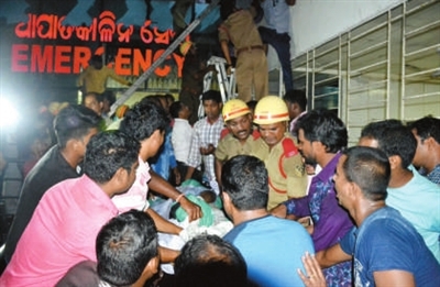 | 印度东部奥迪沙邦首府布巴内什瓦尔救援人员从失火医院向外转移病人 |