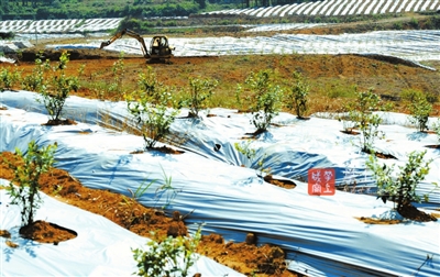10日,通山县大路乡新桥冯村9组村民在水果基地平整土地。