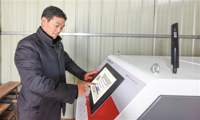 11月2日,嘉鱼富德蔬菜合作社理事长王国雄在嘉鱼首台水肥药一体智能机上轻按键盘,通过管道和滴头使100个大棚内形成滴灌,且均匀、定时、定量。