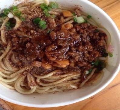 通山热干面看上去很干,拌匀后,面条泛起油光,辣萝卜、葱花红绿点缀其中,看上去就很有食欲,用筷子挑起一些尝尝,芝麻粉的香味便迅速侵占你的味蕾,葱香面条,配上甜甜的、辣辣的萝卜丁,美味无法阻挡。