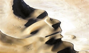 近日,摄影师瓦莱里奥·利昂在乘直升机飞过纳米比亚沙漠的时候发现了一个巨型“沙人”——沙丘上呈现出一个“人脸”的图像,十分罕见。