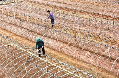 “小雪”节气临近,山东省迎来农作物冬季防寒管护的关键期,各地农民加紧对农作物采取覆土、盖地膜、搭建大棚等保温措施,确保农作物安全越冬。