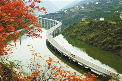 11月24日,在宜昌市兴山县,当地着名的“水上公路”犹如一条巨龙,静静“站立”在碧波荡漾的水库中,沿途的山上红叶迎风摇曳,犹如一幅绝美的画卷。据了解,兴山县“水上公路”是国内首条水上生态环保公路,为避免开山毁林,有效减少对环境的破坏,当地摒弃了开山修路或打隧道的方案,而是采用造价更为高昂的水上架桥方案修建一条“路景相融”的“水上公路”。如今,“水上公路”已成为兴山县的迎宾大道和美丽画廊,并将兴山县城、高岚风景区与神农架景区更好地融合在一起,极大地促进沿线旅游资源的开发。(本报综合)