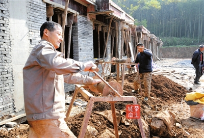 11月10日,在桂花泉镇官庄村沈家山地质灾害整体搬迁安置点,记者看到施工人员正在紧张施工,占地5亩、建筑面积900平方米的4栋安置房已封顶,现进入广场硬化、房前屋后绿化和水、电、路等后期工程。
