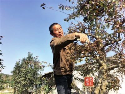 他到书店买了花卉、苗木、盆景等相关书籍,每天忙完农活就看;又到市场上买了些苗木,种在菜地里。等苗木长大了些,他就移栽到盆里,按照书上的样子,剪去多余的枝条,再用铁丝、绳子造型。