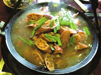 入冬后,最想吃的便是嘉鱼的龙骨煨野藕吊锅,亲朋好友围坐在炭火旁,龙骨煨野藕一端上来,大家食欲大增,饭也能多吃上几碗。