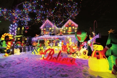 圣诞节临近,加拿大多伦多地区的许多居民纷纷点亮自家门前新布置的圣诞主题彩灯装饰,张灯结彩迎接圣诞节。 新华社发