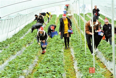 据悉,新桥冯村今年引进富民公司等企业,流转3000亩土地发展生态种植园,通过流转土地和雇佣村民务工已经为村民人均增收4000元左右。草莓基地占地50亩,目前建有双膜大棚67个,主要品种有小白、红颜、樟姬等。