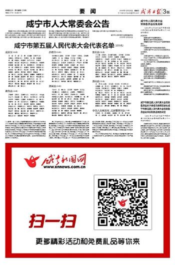 咸宁市第五届人民代表大会代表名单(351名)