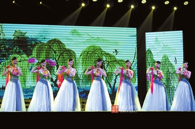 元旦前夕,咸安区横沟高中红旗路中学举行第一届艺a术节文艺晚会,以轻松欢快的歌舞放飞青春梦想,喜迎2017年。图为学生们正在表演小组合唱《香溪香》。