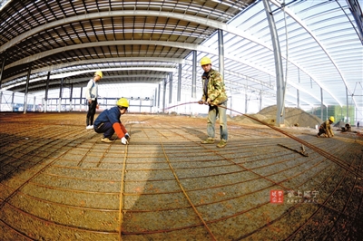 昨日,咸宁南玻光电玻璃有限公司生产厂房正在加紧建设。