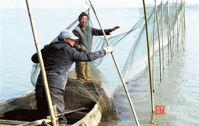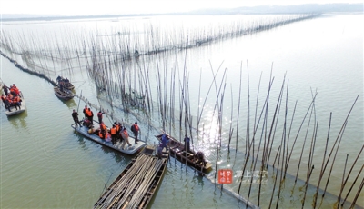 2016年12月30日,冬日暖阳和煦。咸安区官埠桥镇泉湖村斧头湖上,随着渔民们的动作,一湖水向着“环保生态”的未来突围。