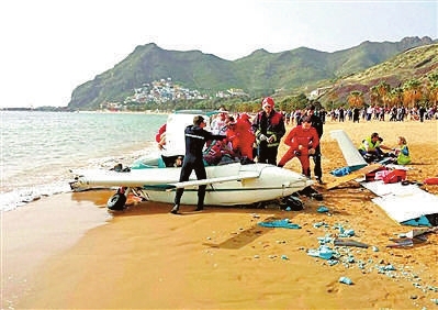 近日,一架飞往摩洛哥的私人飞机因技术原因紧急迫降在西班牙特内里费海滩,飞行员、乘客及海滩游客无人伤亡。据悉,该架飞机上共有来自比利时和英国的3名乘客。据报道,此架飞机在飞往摩洛哥的途中出现技术故障,本来准备紧急降落在特内里费机场跑道,但在数分钟后不得已降落在了特内里费海滩上,游客无伤亡。
