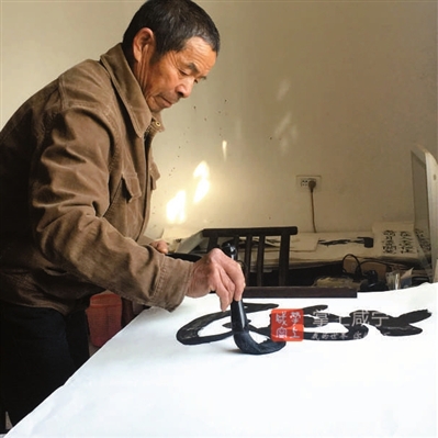 现在,他的书法得到村民的认可,哪家有红白喜事,就邀请他去写对联。过年时,村民们争抢着让他写春联。还有些村民让他教自己小孩练书法。