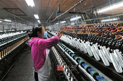 16日,通城县同力玻纤有限公司车间,工人们正在机器旁忙碌。