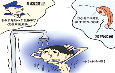 伍女士说,就此问题拨打了联合水务的客服电话,对方回应小区二次增压属物业管理;询问物业,物业说他们已经增压,但水务公司的配件损坏,正在申请更换。