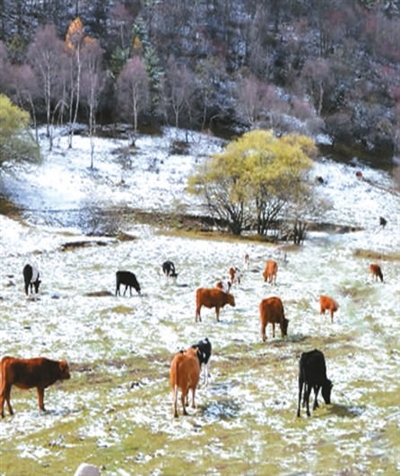 徒步走进这高山草甸,草虽已枯黄,但仍有羊群觅食。残雪覆盖,倒生出一种“瑞雪兆丰年”“春风吹又生”的希望。牧羊人悠闲地站在一旁,也许在静静思考来年的春耕计划,也许只是静静地站在那里,仿佛与天地对话。大羊都在勤勤恳恳地啃食,而小羊或跟随“家长”蹒跚学步,或随意舔舔草皮、翻身打滚,享受这难得的“童年时光”。