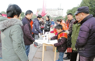 15日上午,咸安区横沟桥镇开展送春联到万家活动,咸安区诗书画协会、镇诗书画协会以及横沟中小学13名书法爱好者参加了此次活动。整个活动洋溢着新年的喜庆气氛,洋溢着墨汁的扑鼻芳香。活动现场共免费送出春联300余副。