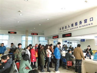 2月3日,咸安区政务服务中心办事大厅公安出入境窗口,办证人员爆棚,当日办理护照185人次。 通讯员 李春摄