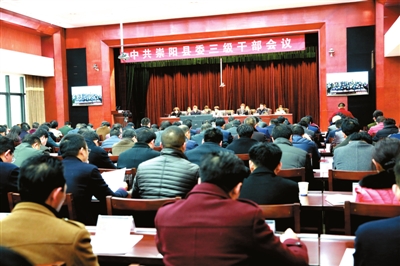 本报讯 特约记者汪淑琴报道:7日,崇阳召开县委三级干部大会,学习贯彻党的十八大和十八届六中全会和中央、省、市经济工作会议精神,落实县党代会描绘的宏伟发展蓝图,表扬嘉奖工作突出的集体和个人,安排部署2017年工作。