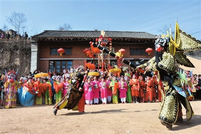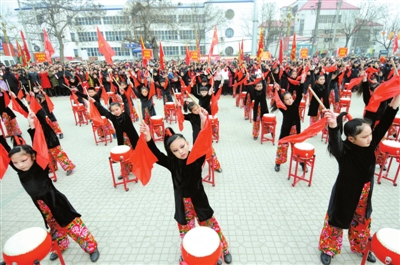 当日,河北省广宗县举办民间文化艺术节,一千多名农民演员通过舞狮、扭秧歌、跑旱船等方式迎接即将到来的元宵佳节。