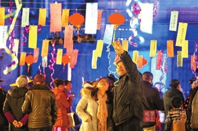 2月10日,咸安区工人俱乐部,市民们在猜灯谜中喜迎元宵佳节。 通讯员 吴涛 摄