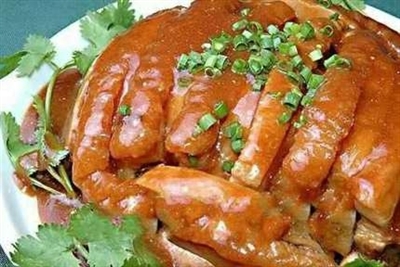制作方法大概为:取猪的前脚夹缝精肉若干,冷水放入大锅内,煮到六七成熟后,捞起切成块状,将八角、桂皮水、五香、酱油、豆豉等佐料放入火锅里拌匀后,装入先垫有一块大肉皮(也可是一块较薄的精肉)的大碗上,肉与肉之间要留少许空隙,好让蒸汽进入,然后又盖上一大块肉皮,再反扣上一只更大的海碗,放到大饭甑上蒸较长的时间,又反扣到上面的那只碗上,再蒸上一段时间,出锅上桌。
