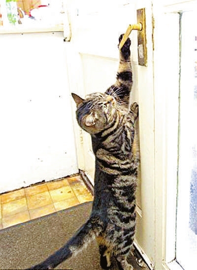 直到儿子来家里看望他们时,才揭开了这个谜底。原来Muffin竟然自己学会了开门!他们的儿子立即用手机拍摄下了Muffin开门的整个过程。视频中,只见Muffin后腿直立,伸出一只爪子不断地拨弄着门把手顺利将门打开。