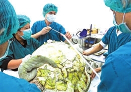泰国一座水池被游客们当作许愿池投入了大量硬币,池中的一只海龟多年来一直误食池中的硬币,不料胃中沉甸甸的硬币竟导致其腹壳开裂。在被送往兽医院接受救治后,兽医生们才发现这只海龟竟然吞下了915枚硬币!