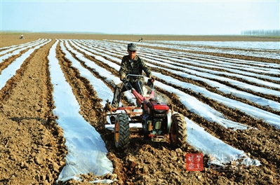 10日,嘉鱼县簰洲湾镇团洲,当地农户正在给种下的甜玉米铺盖地膜。