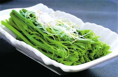 灰灰菜是一种环保的野生菜肴,食用办法也十分简单,把幼嫩的灰灰菜放进沸水中焯一下(时间不宜过长),拌入葱、姜、蒜、盐、味精和香油,如果再加入一些辣椒和醋,吃起来味道更鲜美。