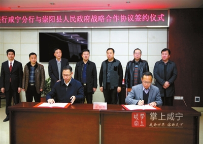 本报讯 特约记者陶然、汪国文、通讯员谢筱华报道:22日、27日,崇阳县人民政府与中国农业银行咸宁分行、中国银行咸宁分行、武汉农村商业银行咸宁分行、中国工商银行咸宁分行、咸宁农商银行等5家市级银行签订政银战略合作协议,书写了该县新一轮政银互惠共赢、共同发展的新篇章。县委副书记、县长郑俊华,农行咸宁分行行长邓楚雄、中行咸宁分行行长姜建华、武汉农商银行咸宁分行副行长徐大明、工行咸宁分行行长钱金叶、咸宁农商行行长杨柳等出席签约仪式。副县长石磊、董志华及相关部门、各乡镇负责人等参加签约仪式。
