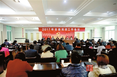 2017年民政工作深入贯彻党的十八届五中、六中全会和习近平总书记系列重要讲话精神,认真落实县委第十四次党代会精神和县委三级干部会议精神、及省、市民政工作会议关于民生民政工作的决策部署,按照“五位一体”总体布局和协调推进“四个全面”战略布局要求,以全面从严治党为统领,以建设创新务实现民政为目标,坚定不移改善民生福祉,找准发力点,实现新突破。2017年的工作思路是“1234”,即:突出一个重点(以深入学习贯彻党的十八届六中全会、习近平总书记重要讲话、全国全省全市民政工作会议精神和县十四次党代会精神为指导,以全面从严格治党和落实主体责任为重点),完善两项工程(民政工作标准化建设工程和社会救助体系工程),深化三项改革(社会组织统一社会信用代码制度改革、养老机构公建民营医养结合改革、农村社区建设试点改革),实现四个确保(确保涉军群体不出问题、确保困难群众生活不出问题、确保民政安全生产不出问题、确保民政资金不出问题),有条不紊扎实推进各项工作。