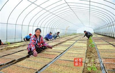 4月7日,大路乡寺下村村民们正在进行早稻大棚集中育秧。