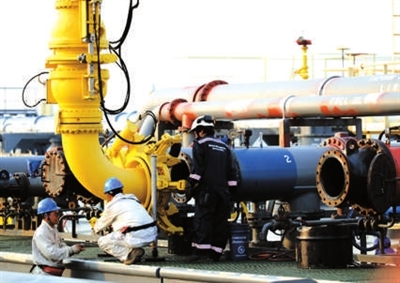 4月10日,在缅甸马德岛港,工作人员帮助卸油臂与油轮原油管口对接。当日,运载14万吨原油的“苏伊士”型油轮在缅甸马德岛港开始卸油,中缅原油管道工程宣告正式投入运行。 据新华社
