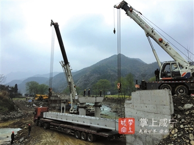 4月5日下午16时35分,随着最后一片桥梁在桥台上准确就位,由崇阳县交通运输局承建的铜钟至小山界段高枧一桥架梁施工,仅40天即超前完成建设任务。