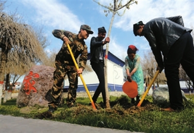 4月11日,新疆公安边防总队伊犁边防支队组织民警与辖区群众共植“亲情树”600余棵,并互留友情联系卡,为绿化当地生态环境助力。 据新华社