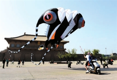 4月12日,来自意大利、德国、法国等16个国家的30余位国际风筝高手携自己独具特色的风筝亮相西安大明宫国家遗址公园进行展示切磋,引得游客纷纷驻足。 据新华社