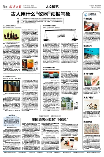 世界气象组织从1961年起,将每年的3月23日定为气象工作宣传日,旨在提醒人们重视气候和环境变化。其实,中国自古以来就非常重视气象问题,舜禹时期已发明了测风的“相风乌”;西汉时就用上了“悬土炭”的方法观测湿度;东汉时已开始用“天池盆”、“圆罂”和“峻积”、“竹器”分别测量降雨和降雪的多少,用“律琯”来预测节气的变化……