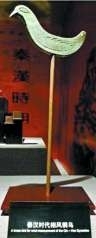 除了候风旗,古人使用较广的测风器还有“相风乌”。“相风乌”也称“伺风乌”,有木制和铜制两种,传说发明于舜禹时代。汉武帝太初元年(公元前104年)建的建章宫上立有“凤阙”,此阙得名便因上立铜质相风乌——凤凰造型的测风仪,人称“铜凤凰”,俗称“铜雀”。